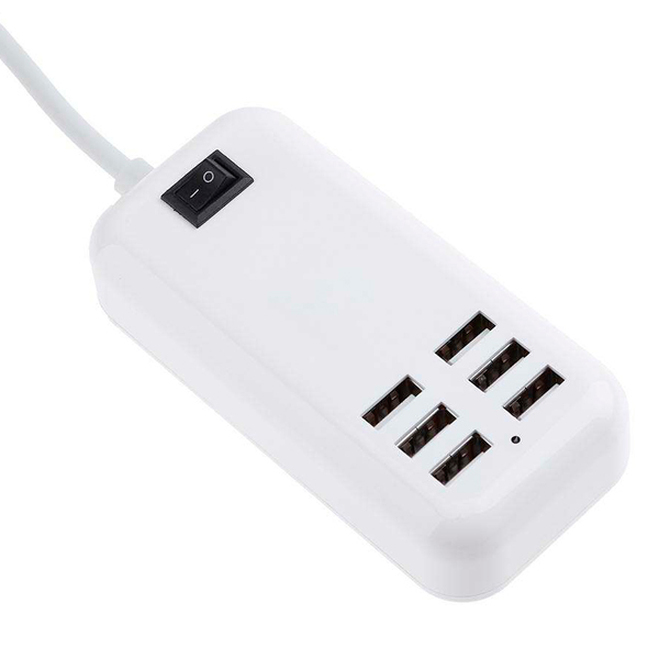 Φορτιστής USB 6 Θέσεων με ON / OFF Διακόπτη 6A 30 Watt 5V DC Λευκός 69998