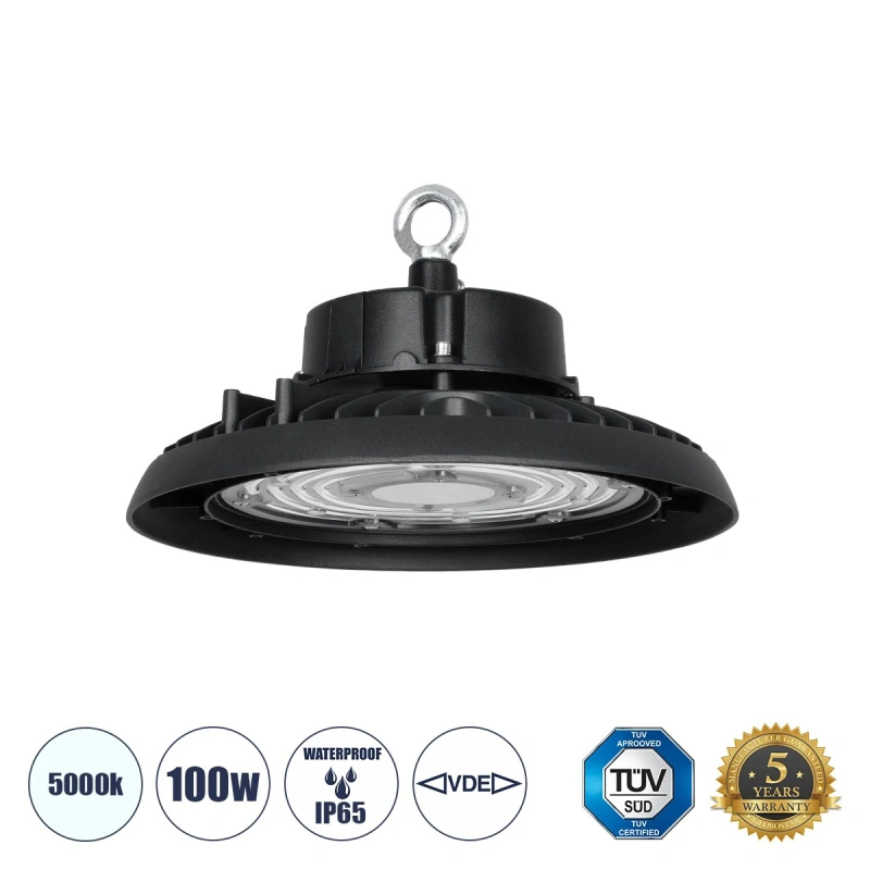 INDUSTRY 61500 LED UFO HIGH BAY 100W 175*SANAN OPTO CHIP 150lm/W 15000lm CRI≥80Ra SDCM<5 90° 85-265VAC 50/60Hz IP65 5000K TÜV SÜD CERTIFIED DRIVER - Μαύρο - Μ26.5 x Π26.5 x Υ15cm - 5 Χρόνια Εγγύηση