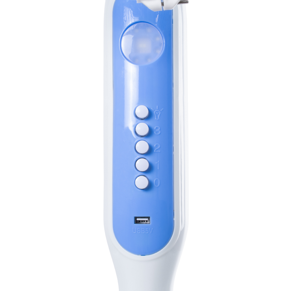 SOLARA-FAN 85355 Solar Fan Αυτόνομος Ηλιακός Επιδαπέδιος Ανεμιστήρας 25W 2 Λειτουργιών Ρεύματος με AC 220-240V ή με Φωτοβολταϊκό Panel 9V 12W & Επαναφορτιζόμενη Μπαταρία Li-ion 7.4V 4400mAh - 3 Ταχύτητες - Ενσωματωμένο USB 2.0 Charger Συσκευών - IP20 - Μ44 x Π37.5 x Υ132cm - Λευκό & Μπλε