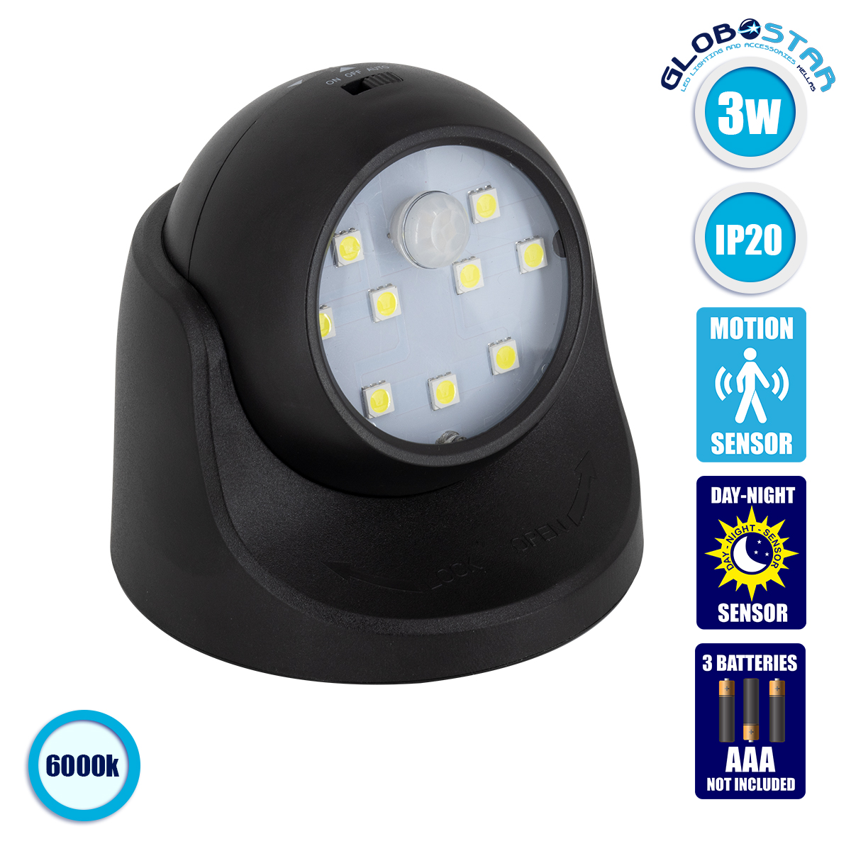 79001 Μαύρο Φωτιστικό Μπαταρίας σε Σχήμα Κάμερας LED SMD 3W 300lm με Αισθητήρα Ημέρας-Νύχτας και PIR Αισθητήρα Κίνησης Ψυχρό Λευκό 6000K