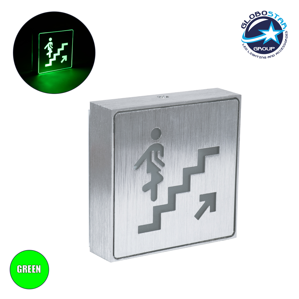 SENSATI 75659 Φωτιστικό Τοίχου Ένδειξης STAIRS UP ARROW LED 1W AC 220-240V IP20 - Σώμα Αλουμινίου - Μ11 x Π11 x Υ3cm - Πράσινο