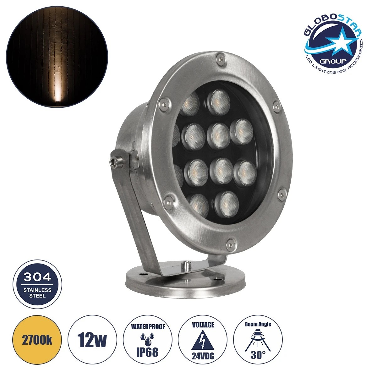 UNDERWATERJERRY 999-0271 Υποβρύχιο Επιφανειακό Σποτ για Σιντριβάνια/Πισίνες LED 12W 1080lm 30° DC 24V Αδιάβροχο IP68 Θερμό Λευκό 2700K Dimmable - Bridgelux SMD Chip - Ανοξείδωτο Ατσάλι 304 - Μ14.5 x Π9.5 x Υ17cm - 3 Χρόνια Εγγύηση