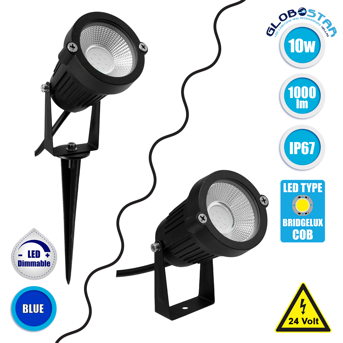 75587 Προβολάκι Κήπου Καρφωτό - Δαπέδου Bridgelux COB LED 10W 1000lm 35° DC 12-24V Αδιάβροχο IP67 Ultra Μπλε Dimmable