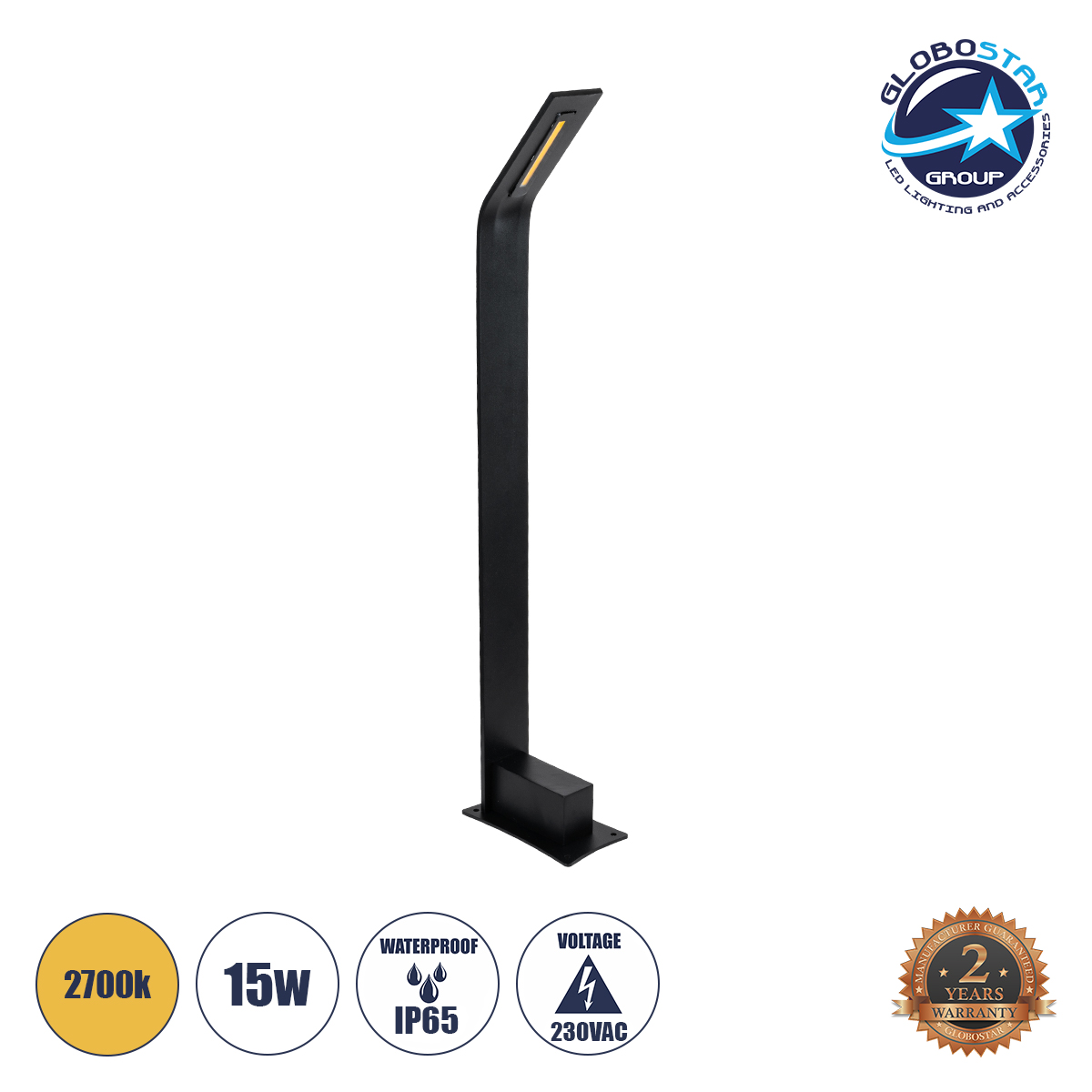 GREENERY 90544 Φωτιστικό Κήπου - Κολωνάκι Αρχιτεκτονικού Φωτισμού Εξωτερικού Χώρου LED 15W 1500lm 120° AC 220-240V - Αδιάβροχο IP65 - Σώμα Αλουμινίου & ABS - Μ8 x Π15 x Υ70cm - Θερμό Λευκό 2700K - Μαύρο - 2 Χρόνια Εγγύηση