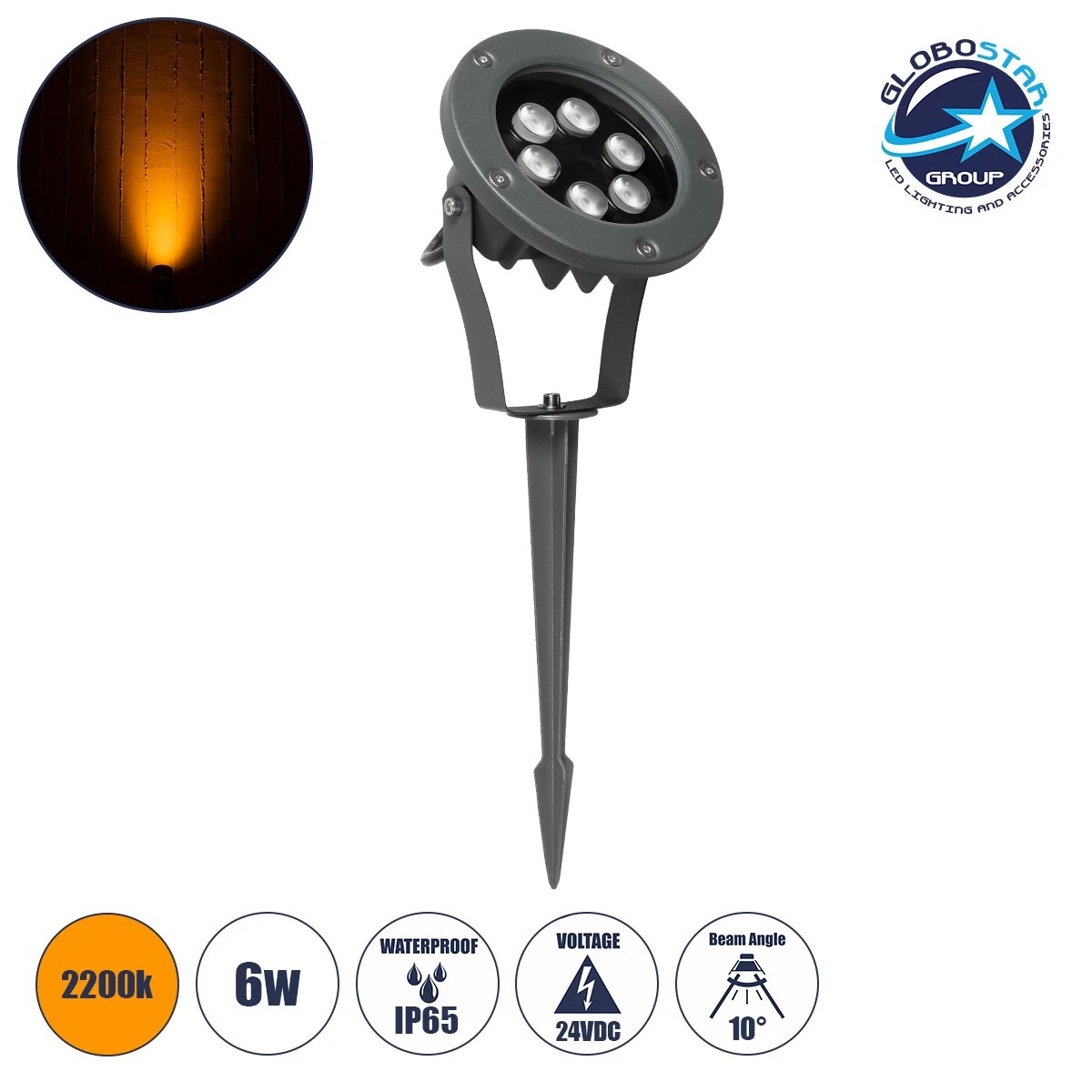 TREETZINA 999-0267 Φωτιστικό Σποτ για Φυτά - Δέντρα με Βάση Κήπου / Καρφωτό LED 6W 510lm 10° DC 24V Αδιάβροχο IP65 Ultra Θερμό Λευκό 2200K Dimmable - Bridgelux SMD Chip - Γκρι Ανθρακί - Μ12 x Π6 x Υ5cm - 3 Χρόνια Εγγύηση