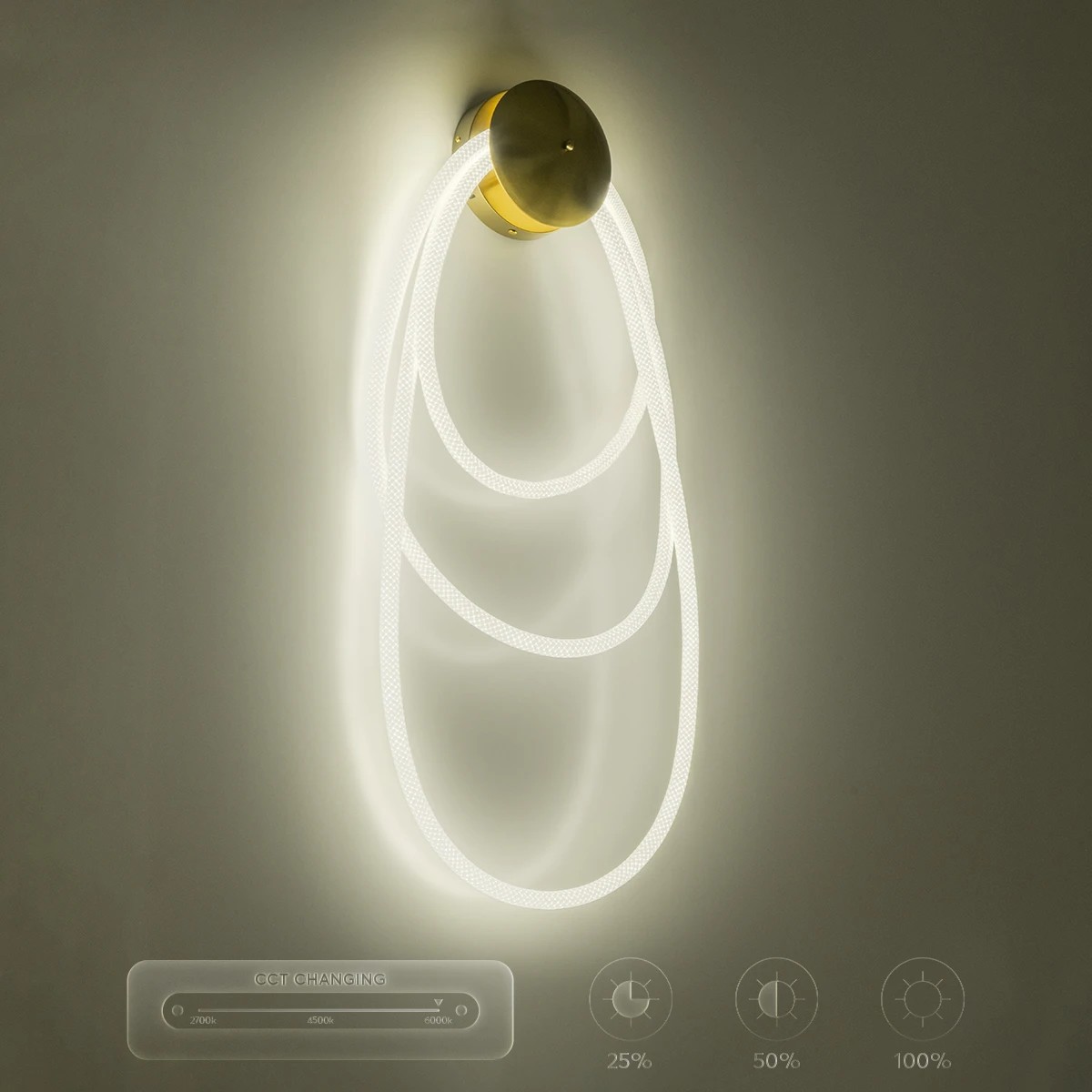 kelvoGLOW 61677 Μοντέρνο Φωτιστικό Τοίχου - Απλίκα LED 60W 6000lm 360° AC 220-240V IP20 Ρυθμιζόμενο Λευκό CCT με Χειριστήριο από 2700K έως 6000K Dimmable - Lumileds SMD Chip - Χρυσό Πλατίνα & Λευκό Νήμα - Μ40 x Π15 x Υ110cm - 3 Χρόνια Εγγύηση