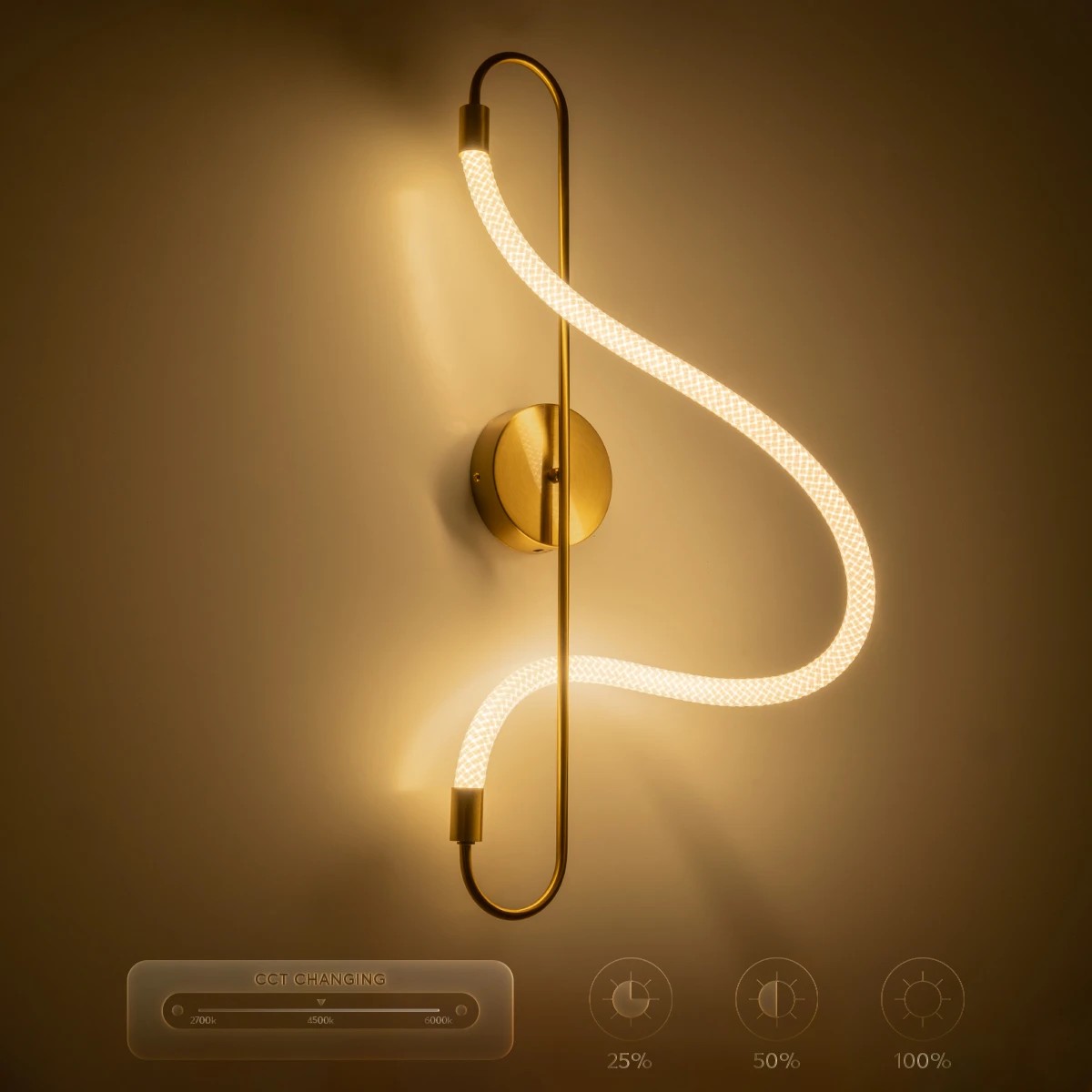 kelvoGLOW 61683 Μοντέρνο Φωτιστικό Τοίχου - Απλίκα LED 18W 1800lm 360° AC 220-240V IP20 Ρυθμιζόμενο Λευκό CCT με On/Off 2700K/4500K/6000K - Lumileds SMD Chip - Χρυσό Πλατίνα & Λευκό Νήμα - Μ30 x Π15 x Υ70cm - 3 Χρόνια Εγγύηση