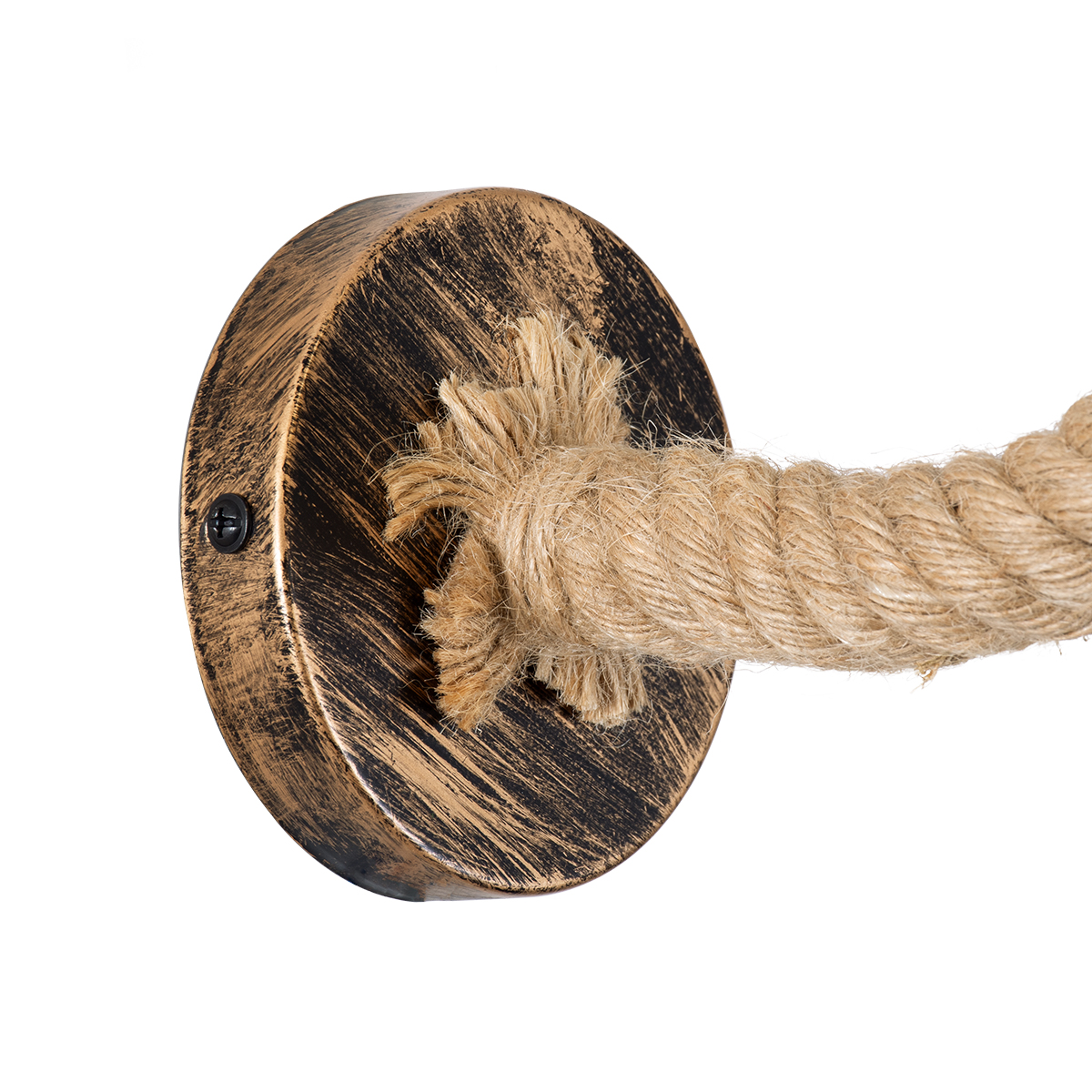 Vintage Φωτιστικό Τοίχου Απλίκα Μονόφωτο Καφέ Σκουριά Μεταλλικό Καμπάνα με Μπεζ Σχοινί Φ27 BRASSO 01132