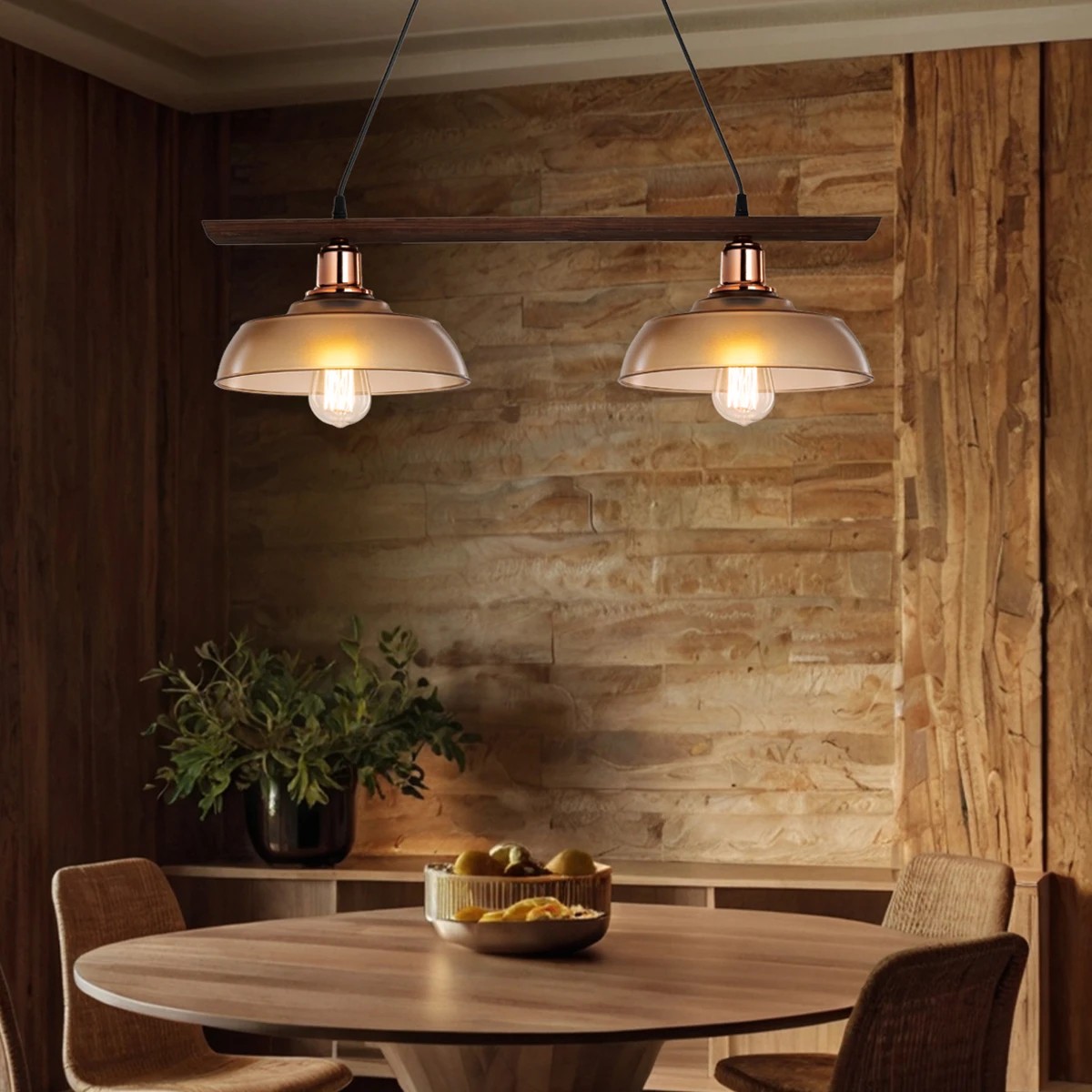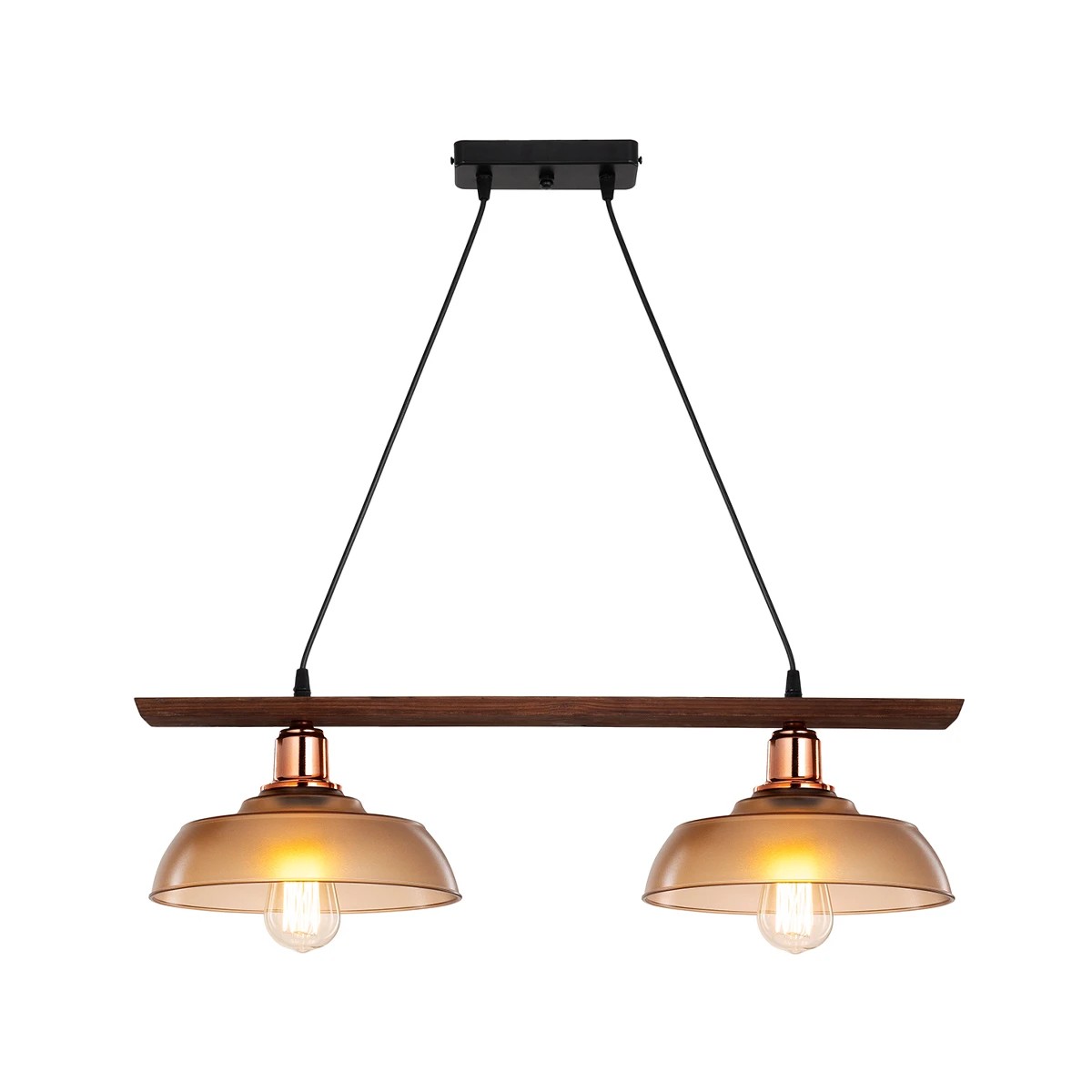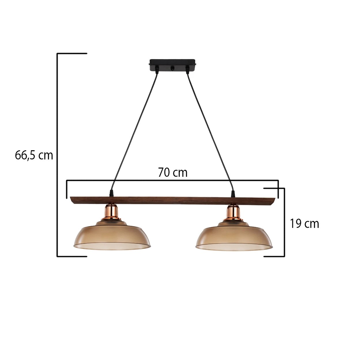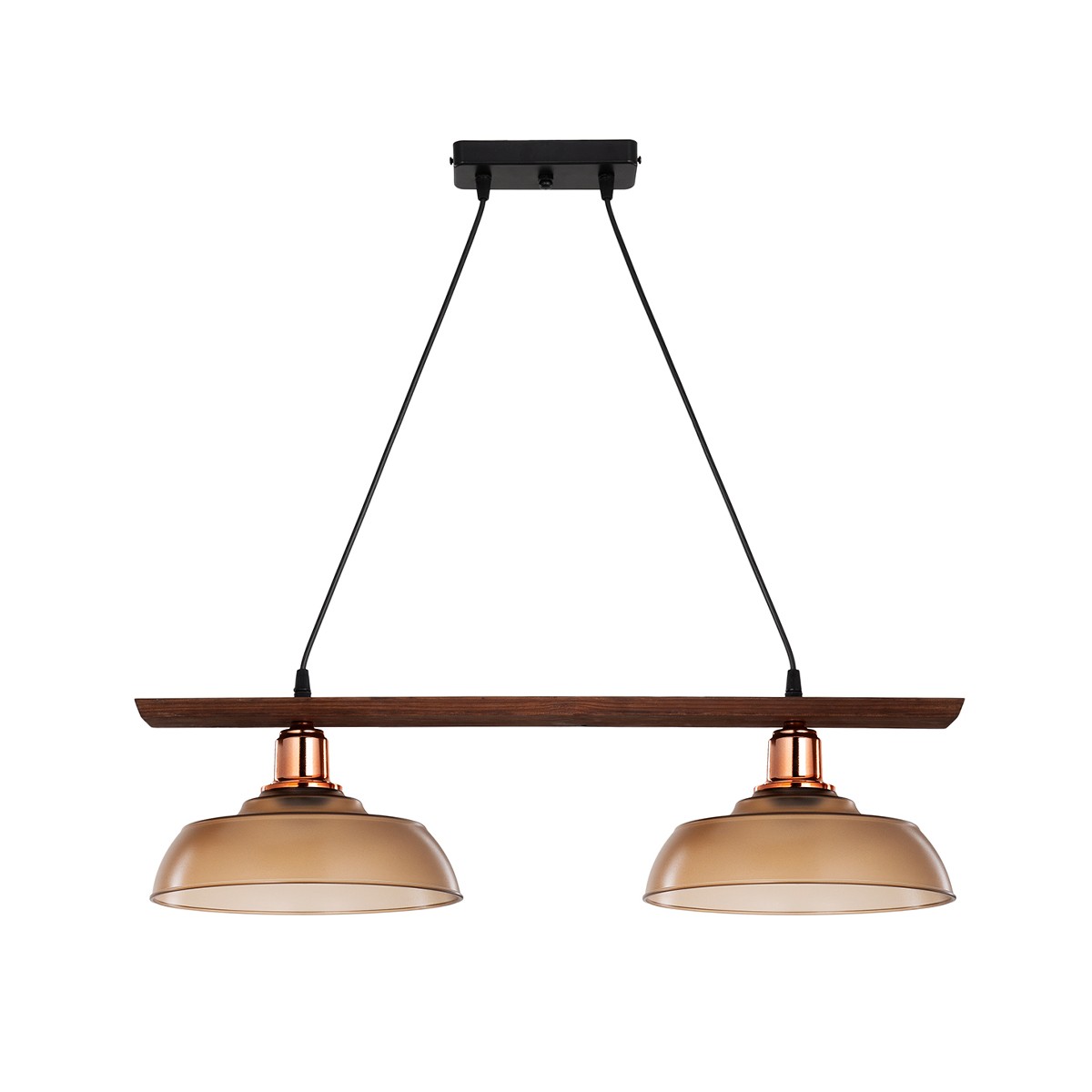 LOAN 203-0288 Μοντέρνο Κρεμαστό Φωτιστικό Οροφής με Ντουί 2 x E27 AC 220-240V IP20 - Καφέ & Μπρονζέ - Μ70 x Π25.5 x Υ19cm