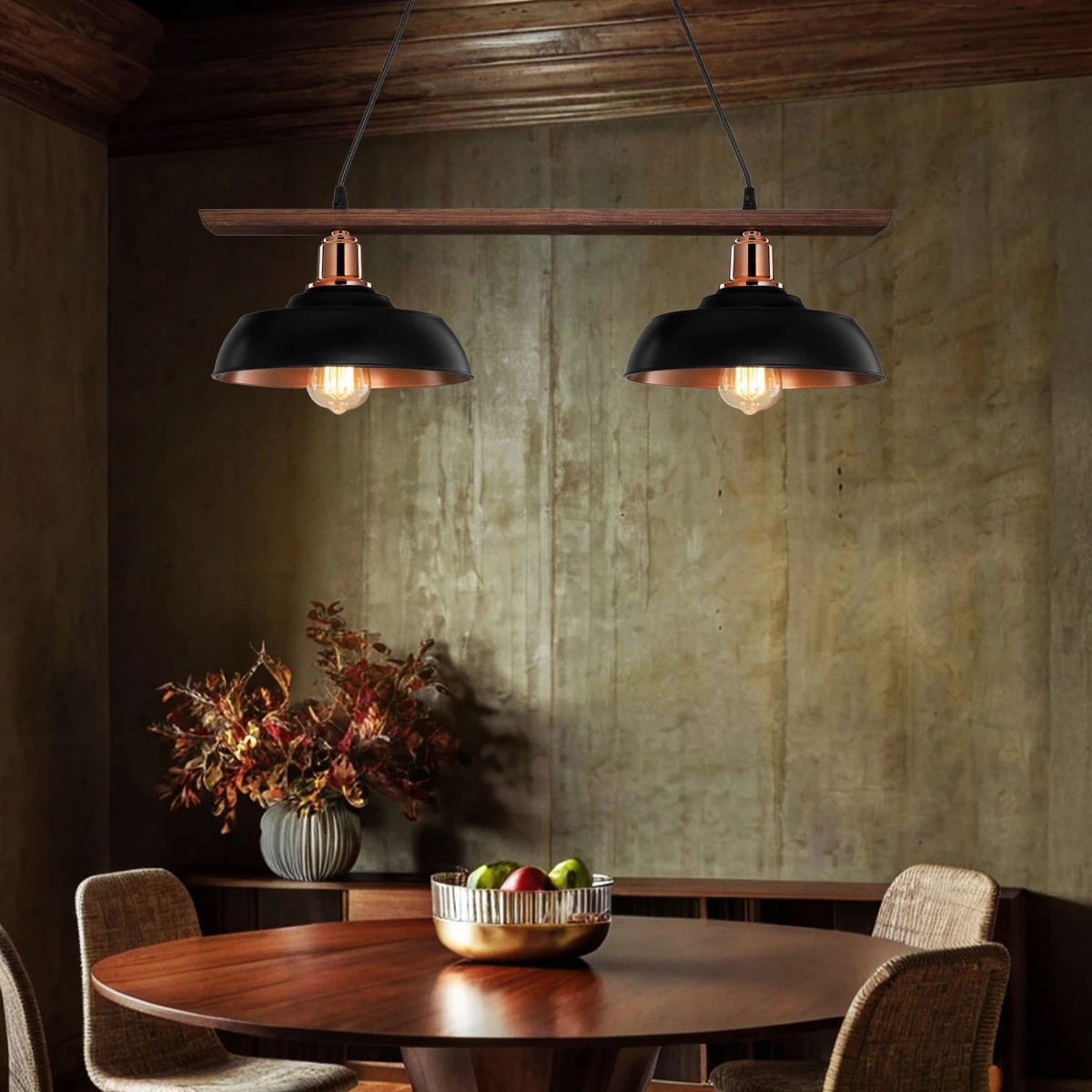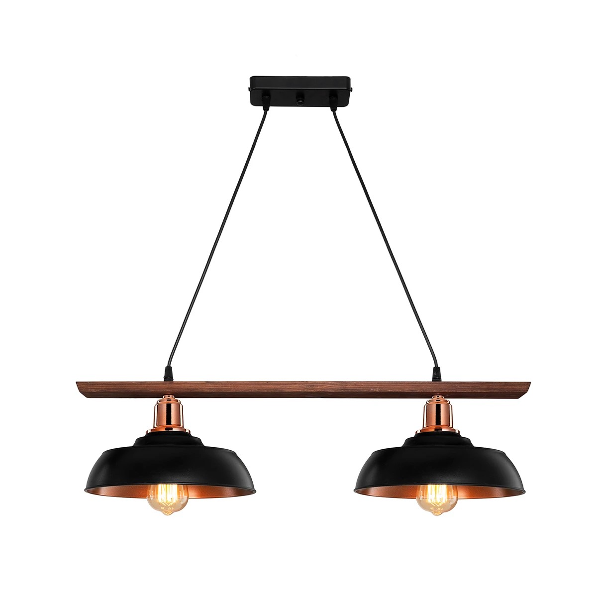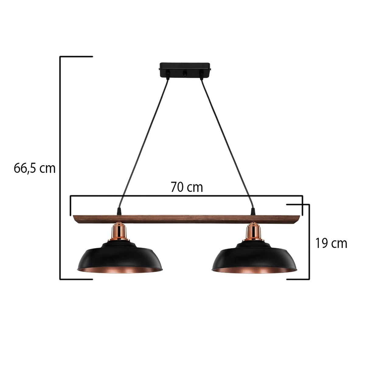 LOAN 203-0290 Μοντέρνο Κρεμαστό Φωτιστικό Οροφής με Ντουί 2 x E27 AC 220-240V IP20 - Μαύρο & Μπρονζέ - Μ70 x Π25.5 x Υ19cm