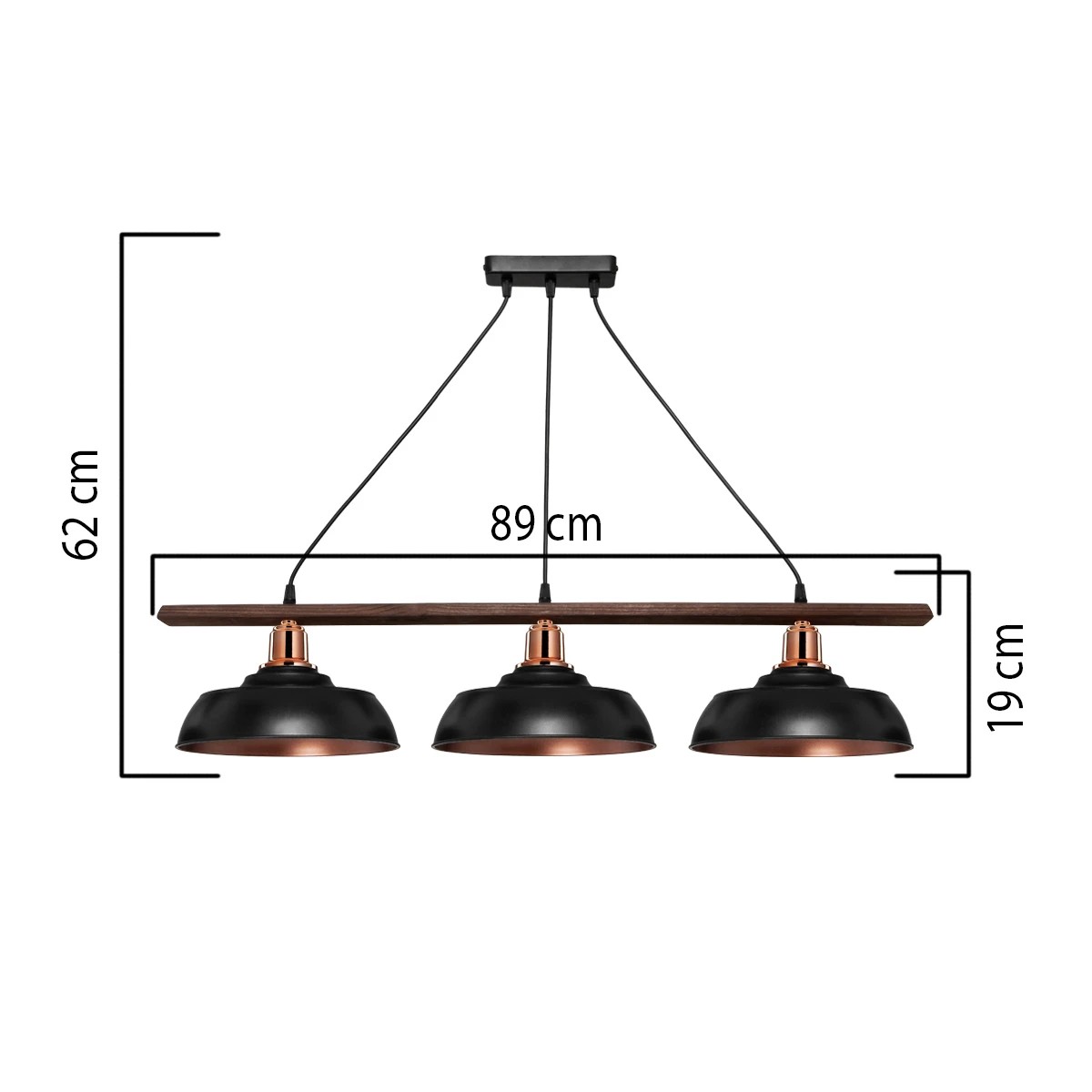 LOAN 203-0291 Μοντέρνο Κρεμαστό Φωτιστικό Οροφής με Ντουί 3 x E27 AC 220-240V IP20 - Μαύρο & Μπρονζέ - Μ89 x Π25.5 x Υ19cm