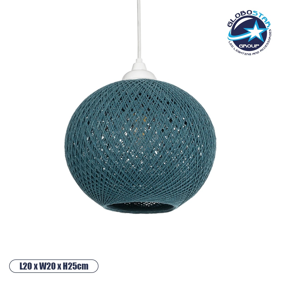 SOLEI 205-0012 Boho Κρεμαστό Φωτιστικό Οροφής με Ντουί 1 x E27 AC 220-240V IP20 - Τιρκουάζ - M20 x Π20 x Υ25cm