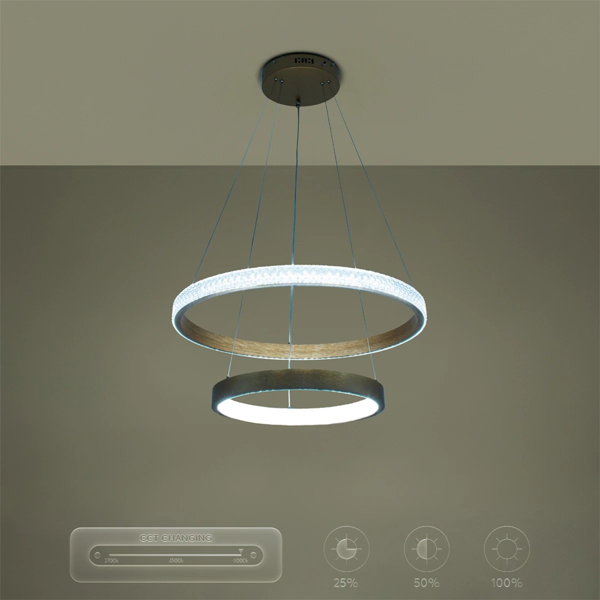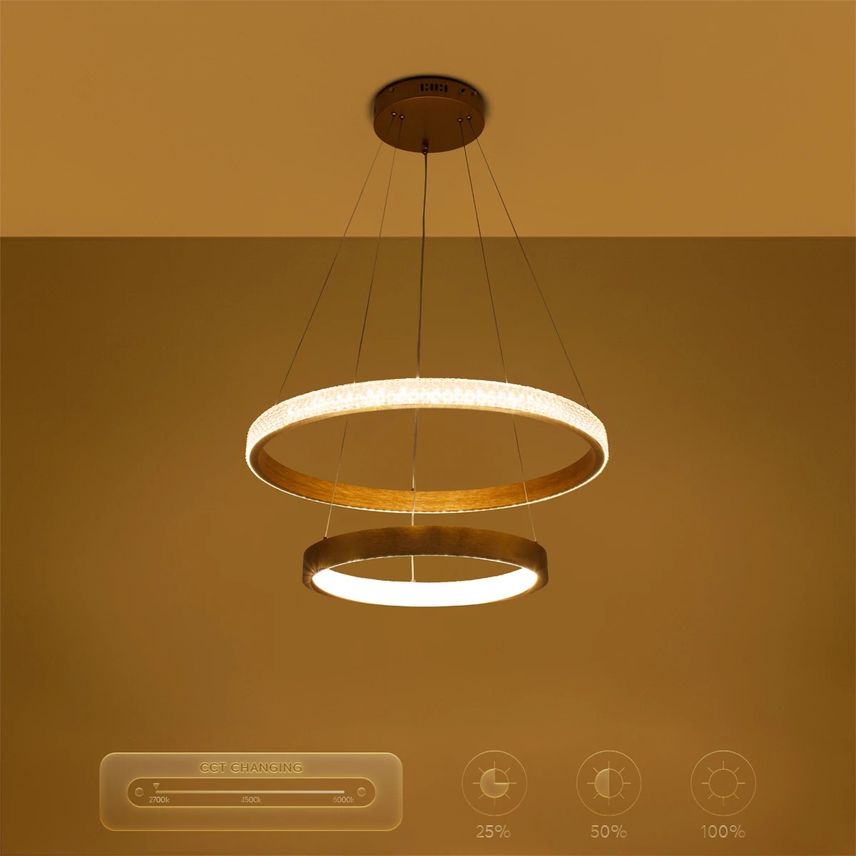 kelvo® DIAMOND KLV-101-0236-V2 Κρεμαστό Φωτιστικό Οροφής LED 75W 7500lm 360° AC 220-240V IP20 Ρυθμιζόμενο Λευκό CCT με Χειριστήριο από 2700K έως 6000K Dimmable - Lumileds SMD Chip - Χρυσό Πλατίνα - Μ60 x Π60 x Υ40cm - 3 Χρόνια Εγγύηση