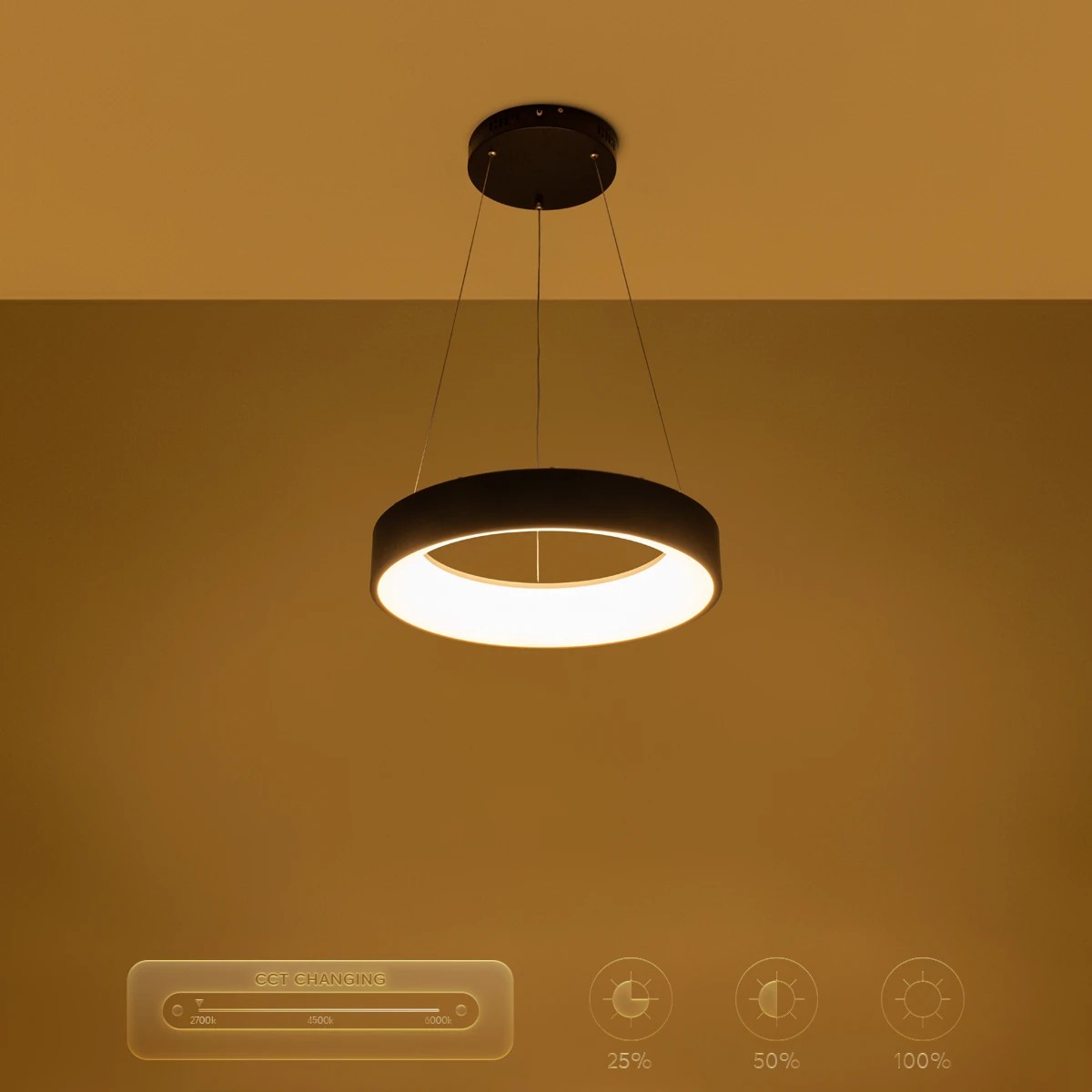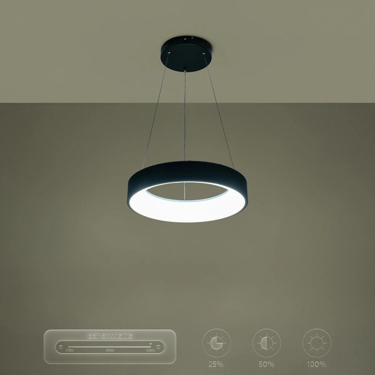 kelvo® SALEM KLV-101-0285 Κρεμαστό Φωτιστικό Οροφής LED 75W 7500lm 120° AC 220-240V IP20 Ρυθμιζόμενο Λευκό CCT με Χειριστήριο από 2700K έως 6000K Dimmable - Lumileds SMD Chip - Μαύρο Ματ - Μ45 x Π45 x Υ6cm - 3 Χρόνια Εγγύηση