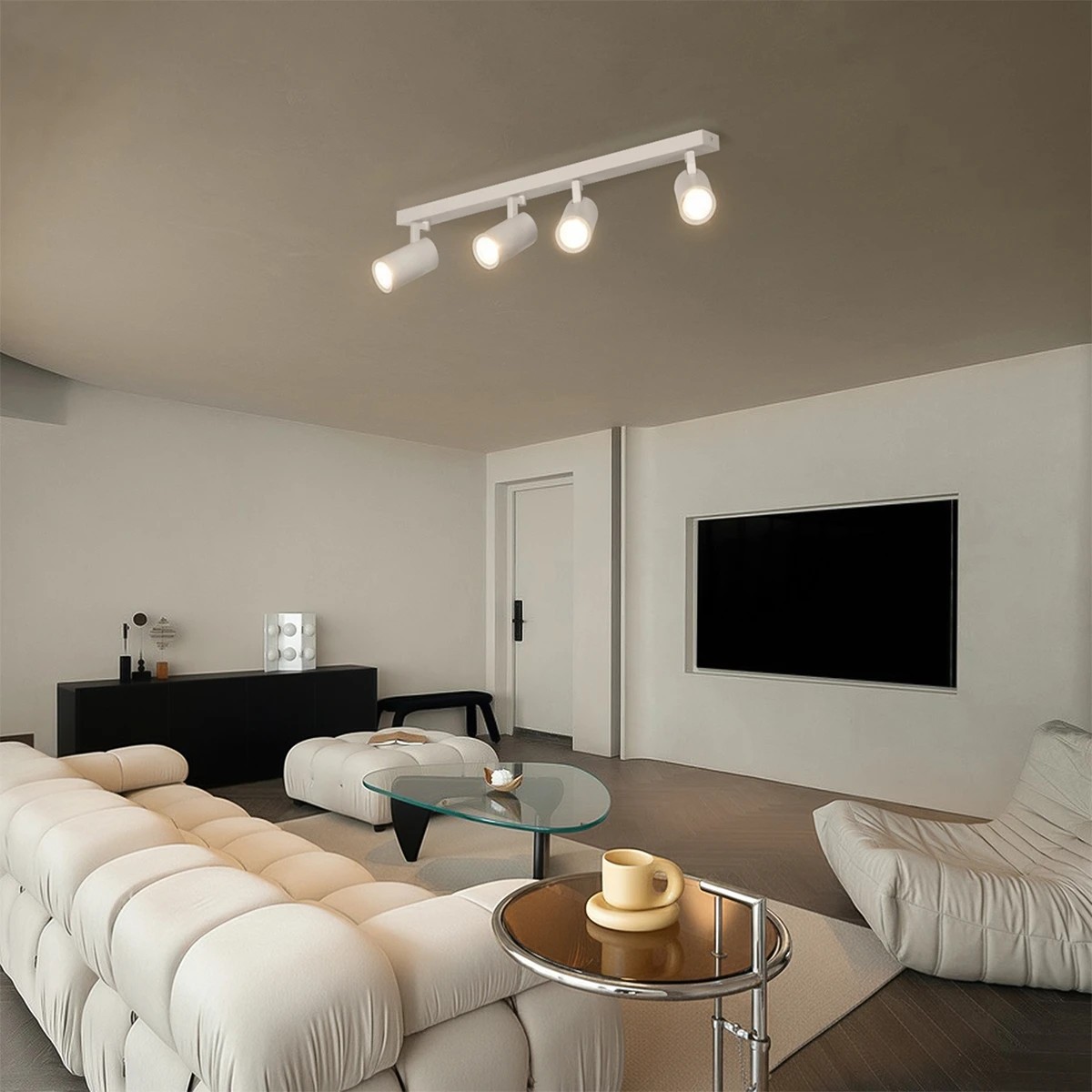 kelvo® SPOTA KLV-101-0141 Μοντέρνο Κινούμενο Φωτιστικό Σποτ Οροφής με Ντουί 4 x GU10 90° AC 220-240V IP20 - Λευκό Ματ - Μ64 x Π6 x Υ14cm