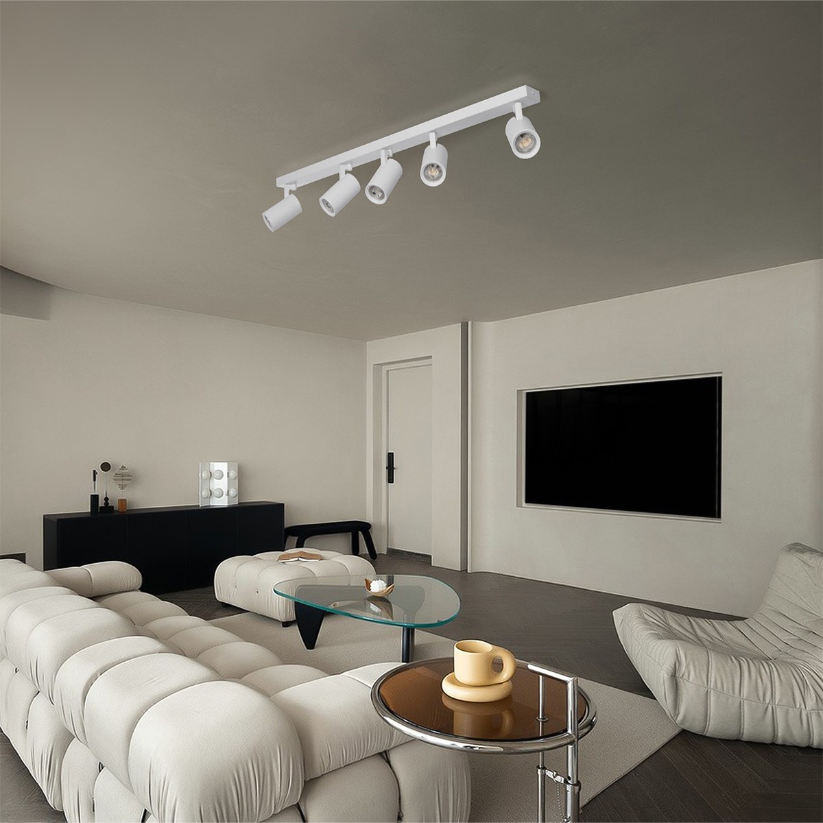 kelvo® SPOTA KLV-101-0143 Μοντέρνο Κινούμενο Φωτιστικό Σποτ Οροφής με Ντουί 5 x GU10 90° AC 220-240V IP20 - Λευκό Ματ - Μ79.5 x Π6.3 x Υ14cm