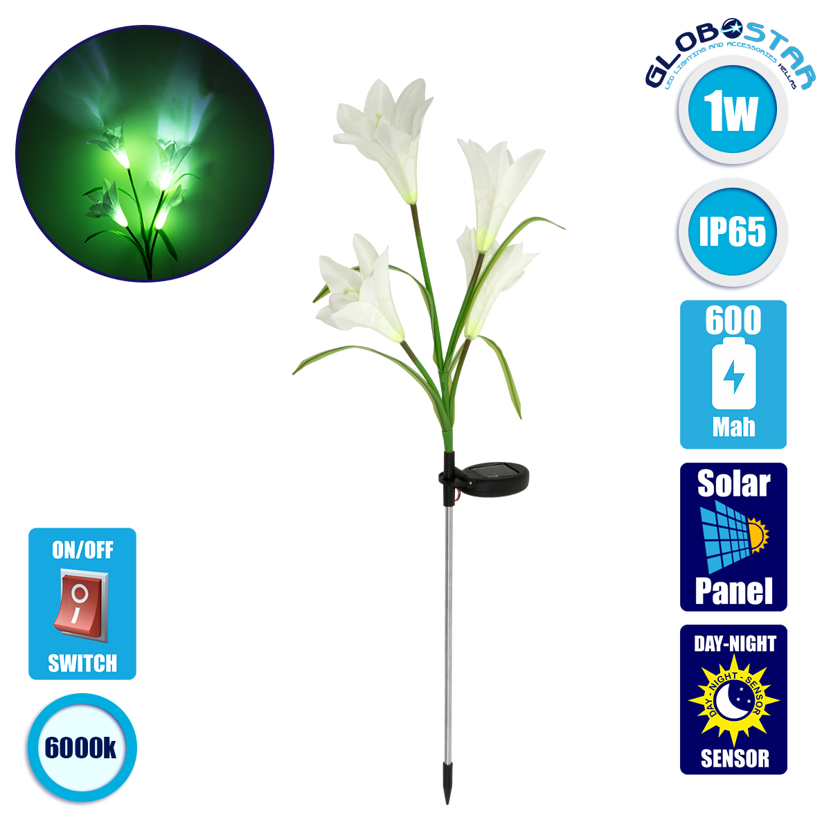 85706 Αυτόνομο Ηλιακό Φωτιστικό Λουλούδι LED SMD 1W 100lm με Ενσωματωμένη Μπαταρία 600mAh - Φωτοβολταϊκό Πάνελ με Αισθητήρα Ημέρας-Νύχτας Αδιάβροχο IP65 Garden Lily Flower Ψυχρό Λευκό 6000K