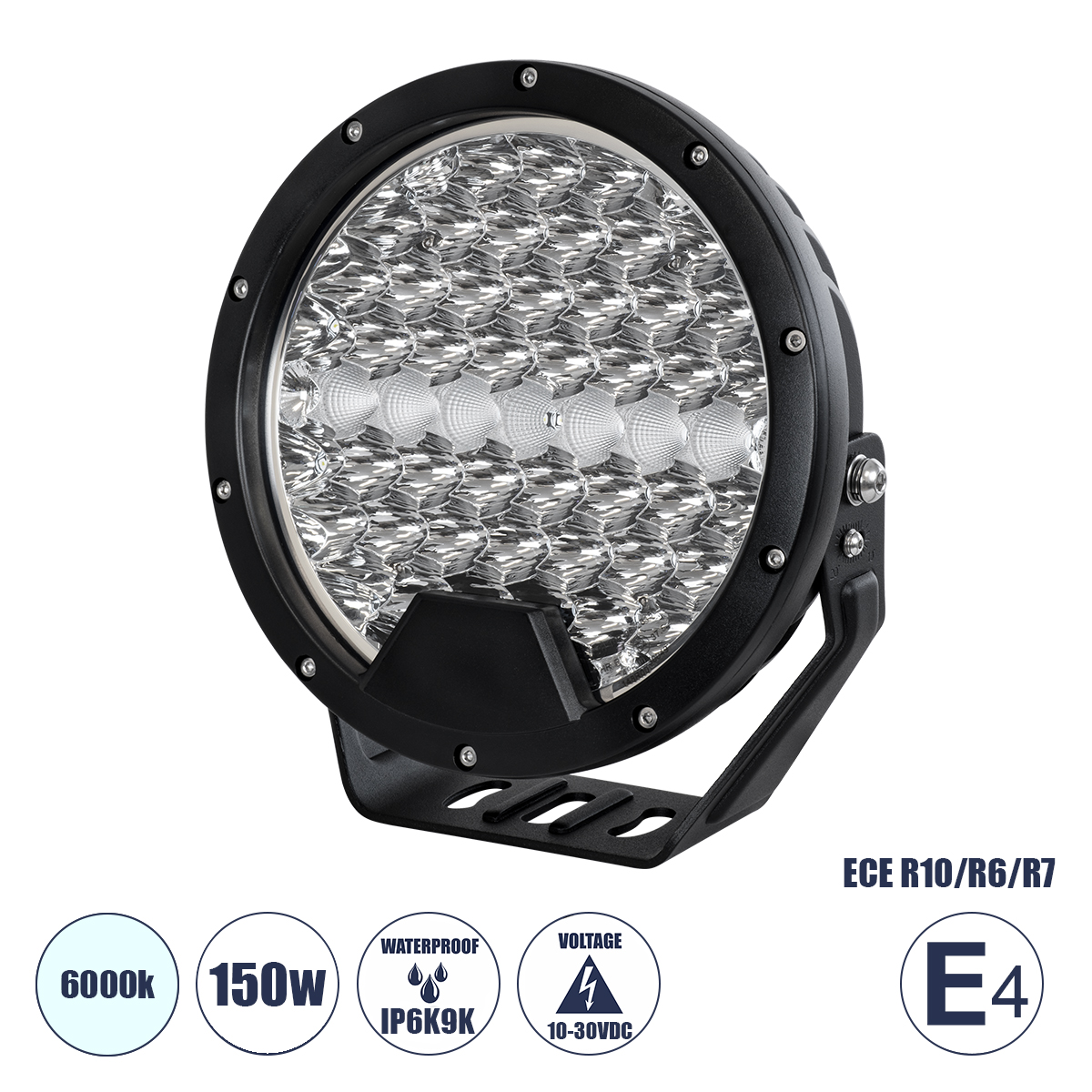 85337 E4 Mark Vehicle & JEEP Work Lights - Φώτα Εργασίας για Οχήματα και JEEP LED High Power 150W DC 10-30V Αδιάβροχo IP6K9K Ψυχρό Λευκό 6000K M22 x Π7 x Υ23.5cm