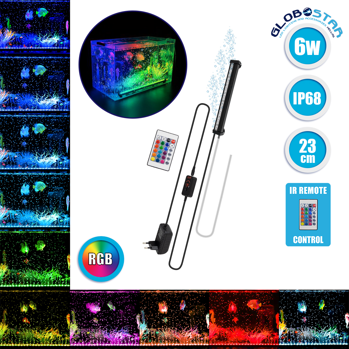 79674 Φωτιστικό Ενυδρείου & Οξυγονωτής / Μηχανισμός Φυσαλίδων 23cm LED 6W 180° AC 230V Αδιάβροχο IP68 με Ασύρματο Χειριστήριο IR Πολύχρωμο RGB