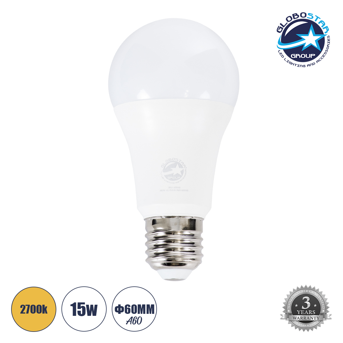 60035 Λάμπα LED E27 A60 Γλόμπος 15W 1410lm 260° AC 220-240V IP20 Φ6 x Υ11.9cm Θερμό Λευκό 2700K - 3 Years Warranty