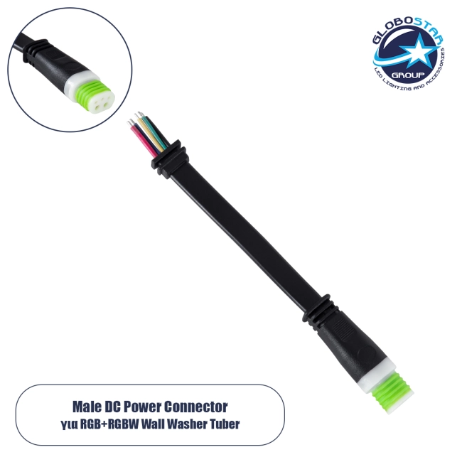 WWCONNECTOR 90708 5 Pin Σύνδεσμος Τροφοδοσίας για Wall Washers & Προβολείς με Είσοδο 5 x 0.25mm2 & Έξοδο 1 x Αρσενικό Βύσμα Αδιάβροχο IP65 - Μαύρο - Μ11 x Π2 x Υ1.2cm