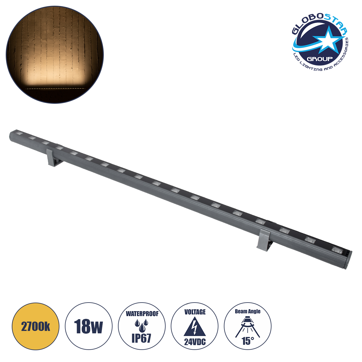 WASHERPANDA 90579 Μπάρα Φωτισμού Wall Washer LED 18W 1980lm 15° DC 24V Αδιάβροχο IP67 Θερμό Λευκό 2700K Dimmable - Bridgelux SMD Chip - Γκρι Ανθρακί - Μ100 x Π4 x Υ3.5cm - 3 Χρόνια Εγγύηση