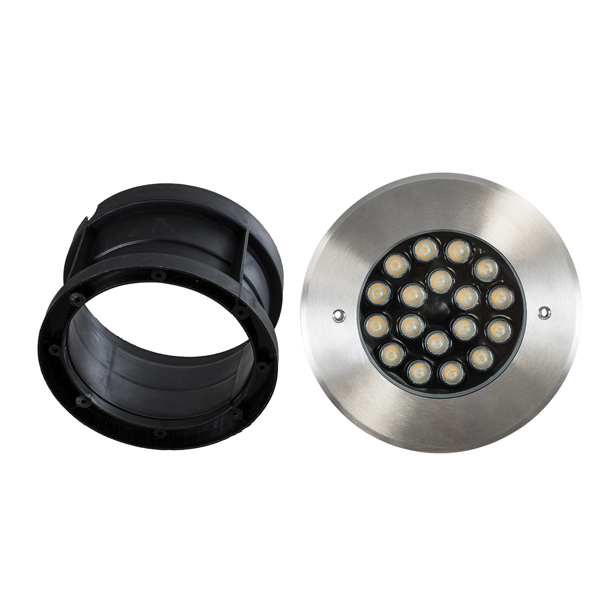 UNDERGROUND-SINA 90571 Χωνευτό Φωτιστικό Σποτ Δαπέδου LED 18W 1620lm 15° DC 24V Αδιάβροχο IP68 Φ20 x Υ11cm Θερμό Λευκό 2700K - Ανοξείδωτο Ατσάλι - 3 Χρόνια Εγγύηση