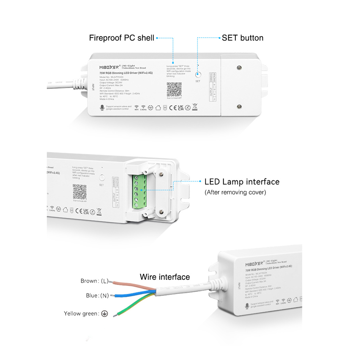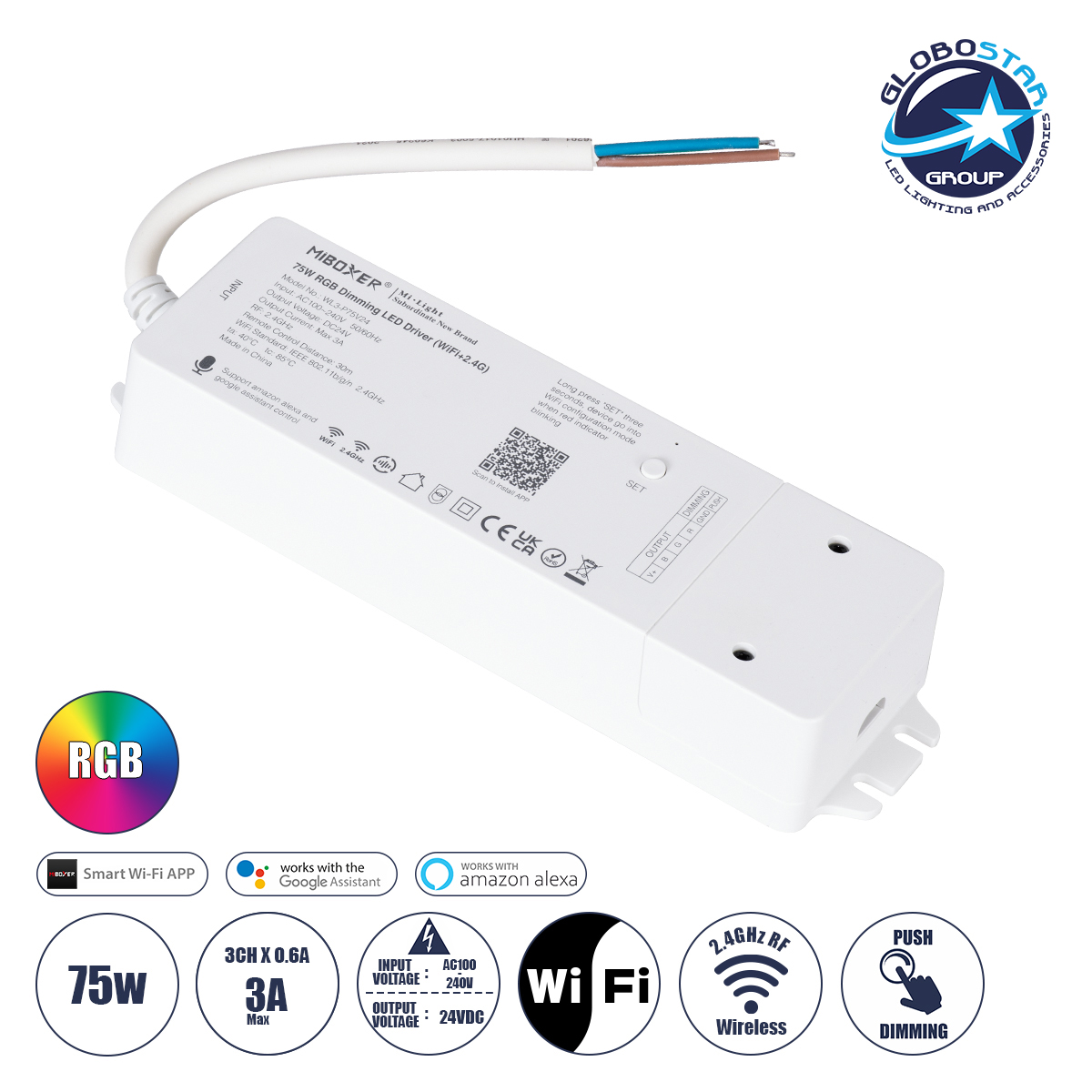 71439 WL3-P75V24 Mi-Light Ασύρματο RF 2.4Ghz Smart Controller LED Driver Wireless WiFi 3 Καναλιών για RGB Προϊόντα LED 75W 3A - AC 100-240V σε DC 24V - IP20 Μ19 x Π5.5 x Υ3.2cm - 5 Years Warranty