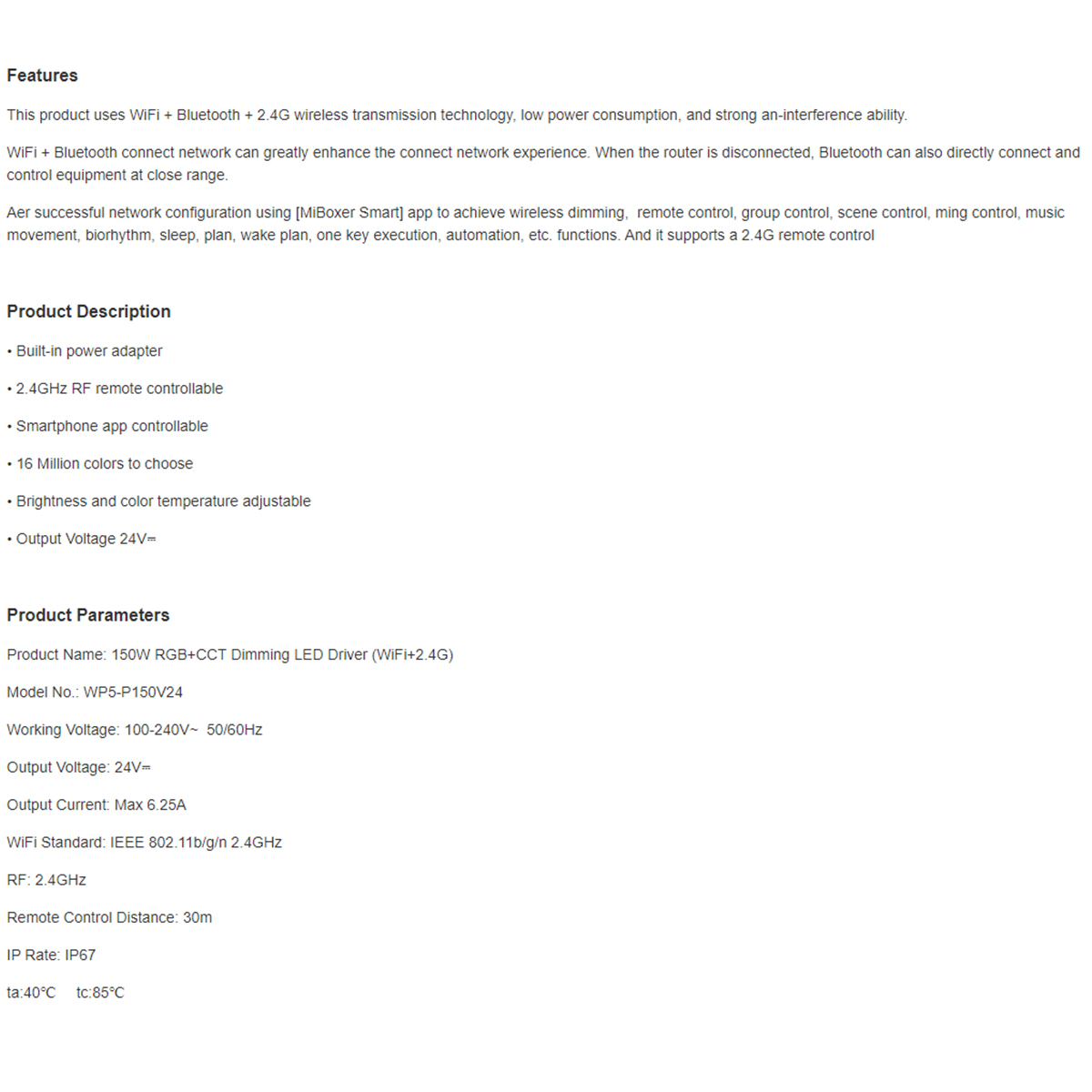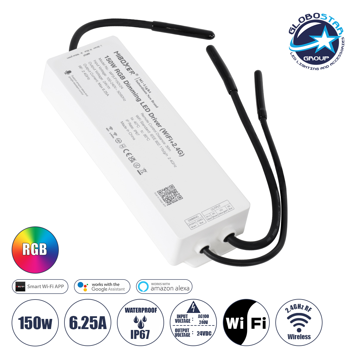 71442 WP5-P150V24 Mi-Light Ασύρματο RF 2.4Ghz Smart Controller LED Driver Wireless WiFi 1 Καναλιού 1 x 6.25A για RGB Προϊόντα LED Max 150W 6.25A - AC 100-240V σε DC 24V - Αδιάβροχο IP67 Μ22.5 x Π7.3 x Υ3.5cm - 5 Years Warranty