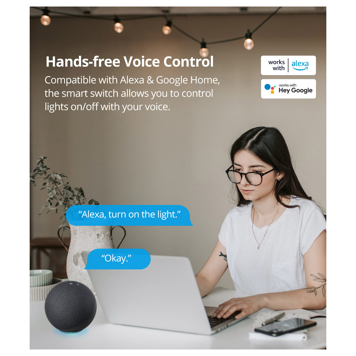 Works With - Δουλεύει με : Amazon Alexa, Google Assistant, Samsung Smarthings