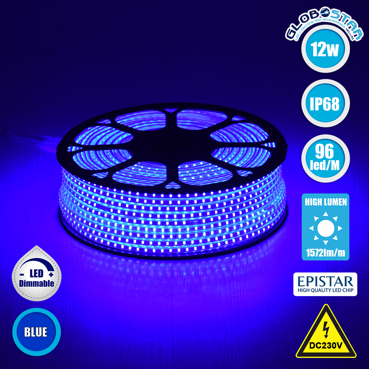 70506 Slim Ταινία Μονής Σειράς Epistar LED SMD 2835 1m 12W/m 96LED/m 1572lm/m 120° DC 230V Αδιάβροχη IP68 Μπλε Dimmable