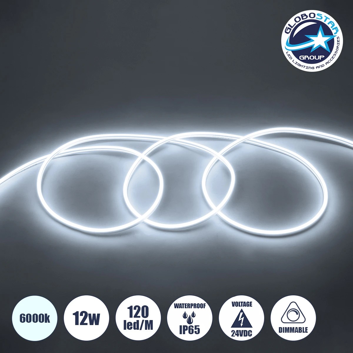 70560 OVALE 120° Degree Neon Flex Epistar LED SMD 2835 1m 12W/m 120LED/m 1320lm/m 120° DC 24V Αδιάβροχη IP68 Ψυχρό Λευκό 6000K Dimmable