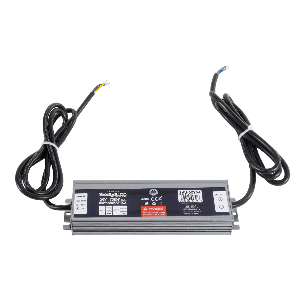 60964 Αδιάβροχο Τροφοδοτικό SELV για Προϊόντα Φωτισμού LED 150W 6.25A - AC 220-240V σε DC 24V με 1.2m VDE Καλώδιο Παροχής & Εξόδου Τροφοδοσίας - Αδιάβροχο IP68 - M20 x W5.5 x H2.5cm - 3 Χρόνια Εγγύηση